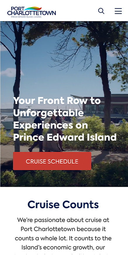 To revitalize Port Charlottetown’s digital presence, we redesigned their website to align with the port’s modernization and rebranding efforts. Key features include an interactive port and cruise schedule for easy access to essential information and an interactive walking map on a touch screen kiosk to help visitors explore Charlottetown’s charm. These enhancements streamline user experience and reflect the port’s evolving identity and growing prominence.